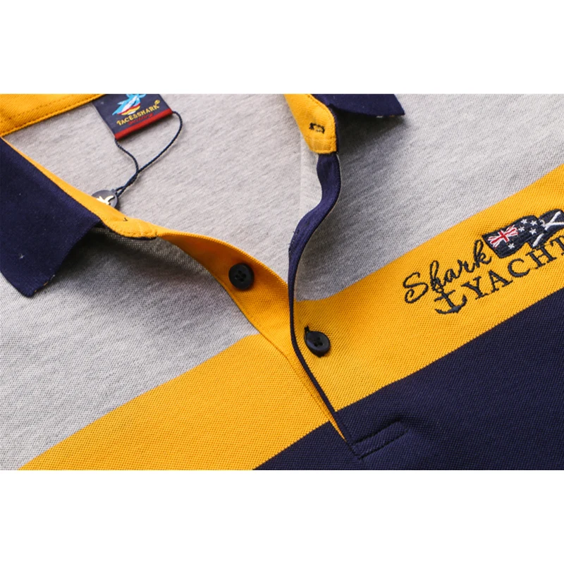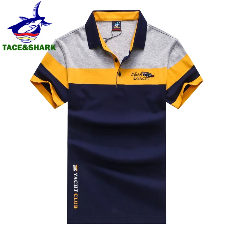 Special Offer Бренд TACE SHARK 2018, модная индивидуальная Мужская рубашка поло с вышивкой акулы, мужские желтые красные мужские рубашки поло с принтом флага, о... Discount 43% Today!